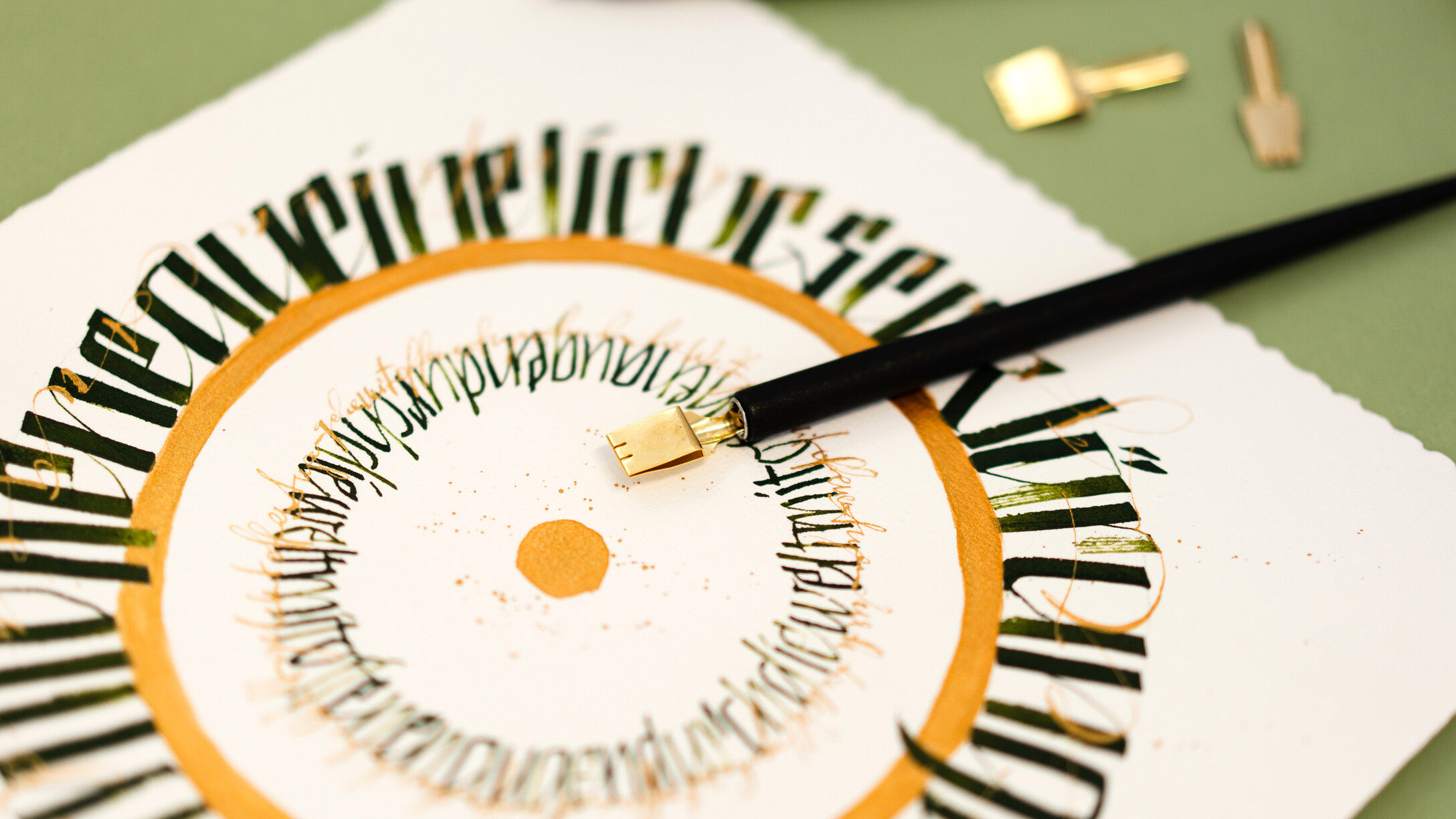 Extrem breite Striche, Striche mit leicht gerundeten An- und Abstrichen, dazu dünne Linien nach oben, nach unten - mit diesen wenigen Elementen kreierte die Schriftkünstlerin Sigrid Artmann die Buchstaben der „BOLD-elegent“. Geschrieben wird diese sehr wirkungsvolle Schrift mit dem Parallel-Pen, Plakatfeder oder sehr breiten Bandzugfedern. Dieser plakativ wirkende Dukdus ist vielseitig einsetzbar, gut mit anderen Schriften kombinierbar. In diesem Workshop zeige ich euch Schritt für Schritt die Buchstaben, sowie die unzähligen Einsatzmöglichkeiten z.B. geschrieben im Kreis oder mit Maskierflüssigkeit als Hintergrund, lass dich einfach inspirieren…….