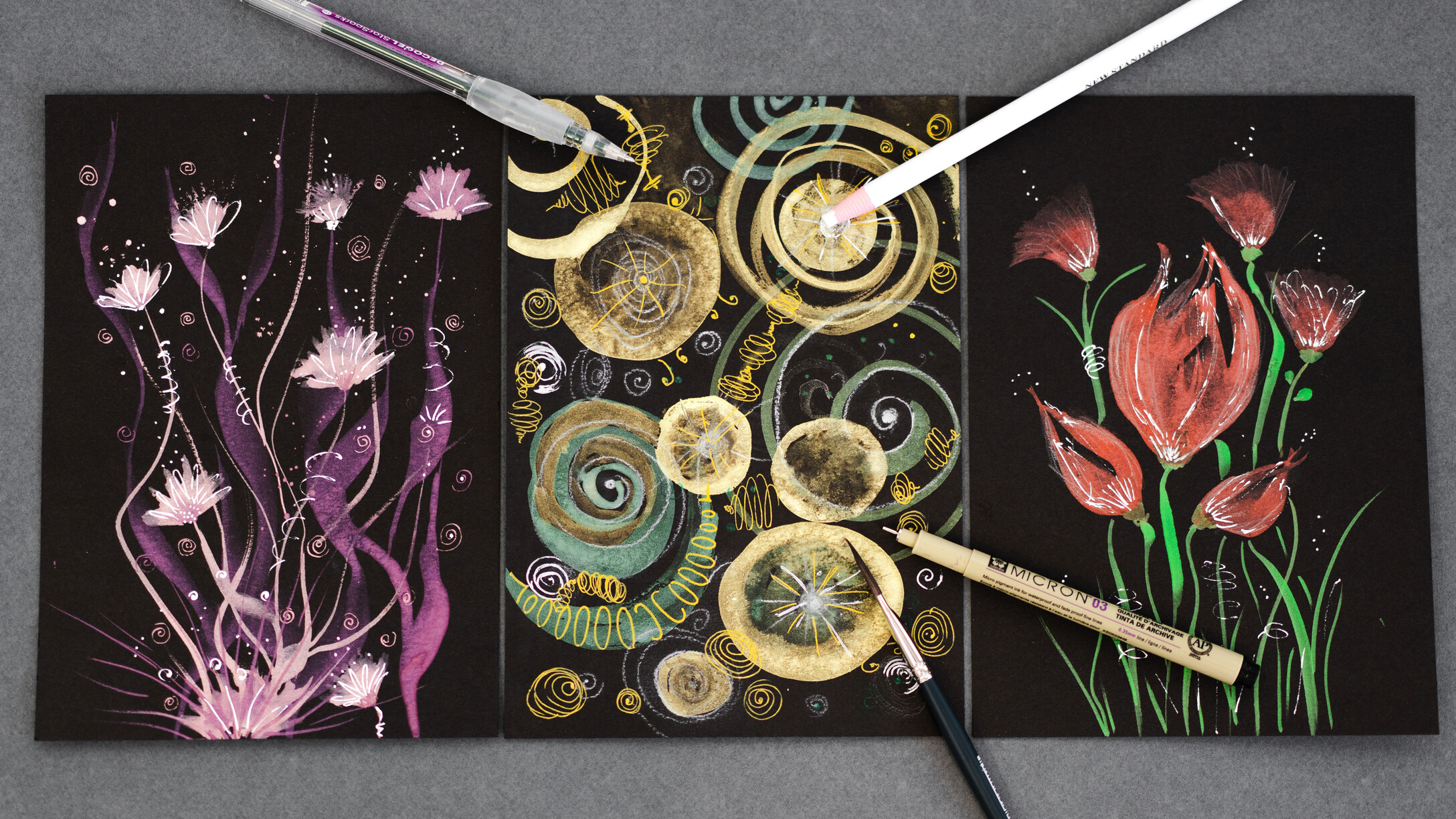 Tieren. Wir arbeiten auch auf schwarzem Papier und nutzen die funkelnden Metallicfarben von Coliro sowie