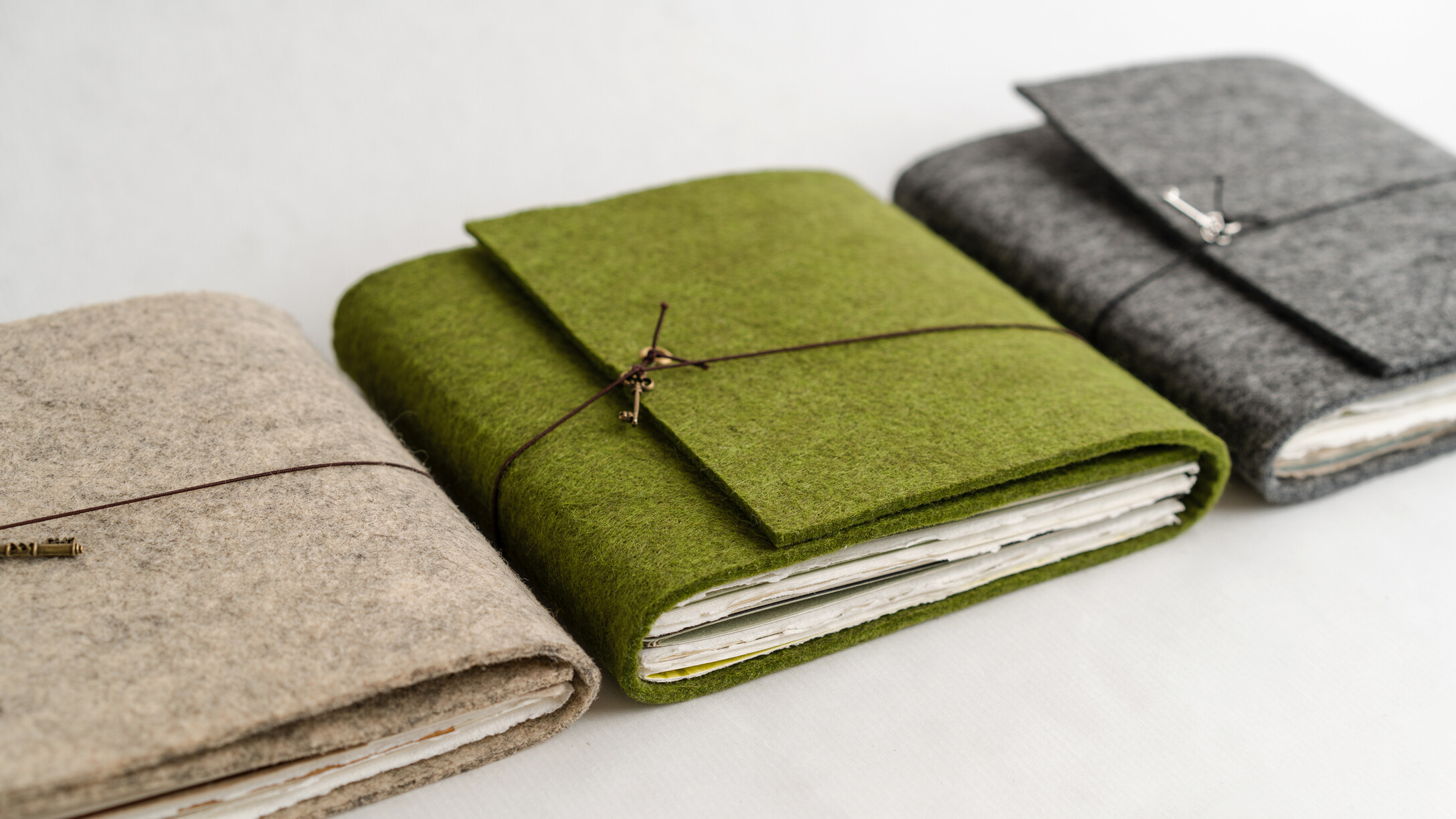 Das Cover besteht aus dickem Filz, der deinem Buch eine angenehme Haptik verleiht. Für den Verschluss kannst du zwischen einer Gummikordel oder einem Lederband wählen – beides sorgt für einen stilvollen und praktischen Abschluss.