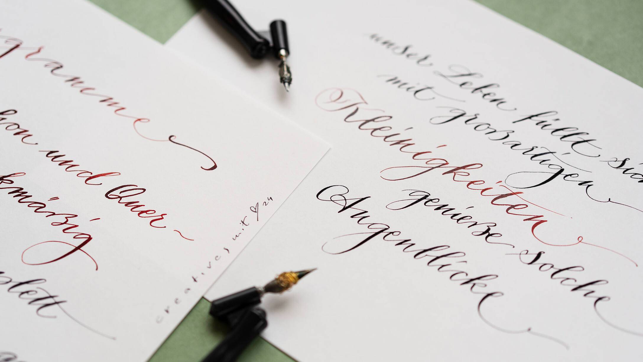 Die englische Schreibschrift wird mit der Spitzfeder und einem Spezialfederhalter geschrieben und ist für leicht Fortgeschrittene geeignet (kalligraphische Erfahrungen wären hier von Vorteil) bzw. für alle, die gerne schreiben und diese schöne Schrift lernen wollen. Neben Tipps und Wissenswertes über Federn und Schrift gestalten wir ein handgenähtes Heft aus Loktapapier.