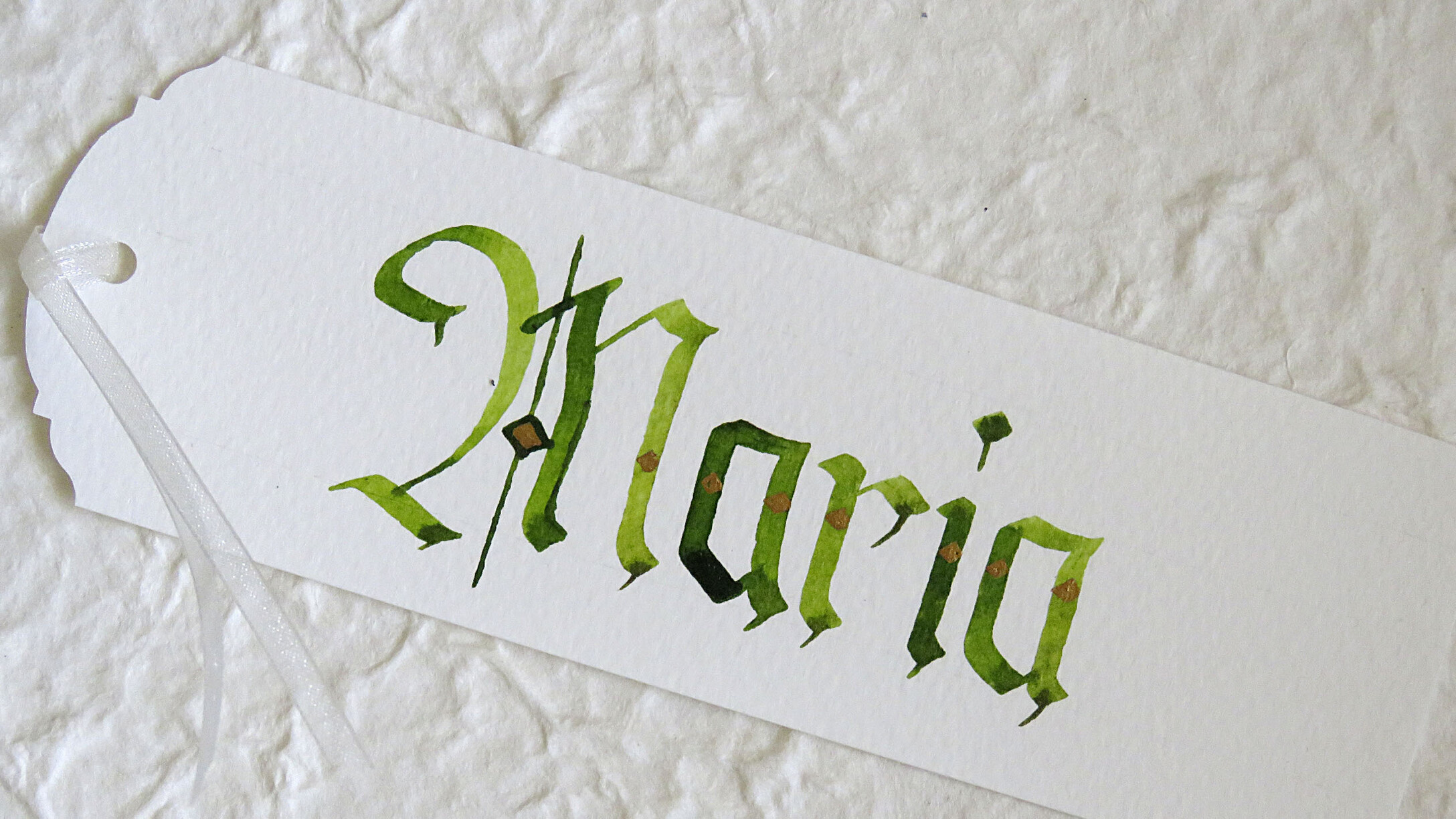 Die Fraktura wird mit der Breitfeder geschrieben und zählt zu den gebrochenen Schriftarten, d.h. die Bögen und Rundungen werden mit einem sichtbaren Knick geschrieben. Vom 16. bis zum 20. Jhd. war sie dei meistverbreitete Druckschrift im deutschsprachigen Raum. Diese Schrift ist eine sehr schöne, vielseitig einsetzbare Zierschrift.