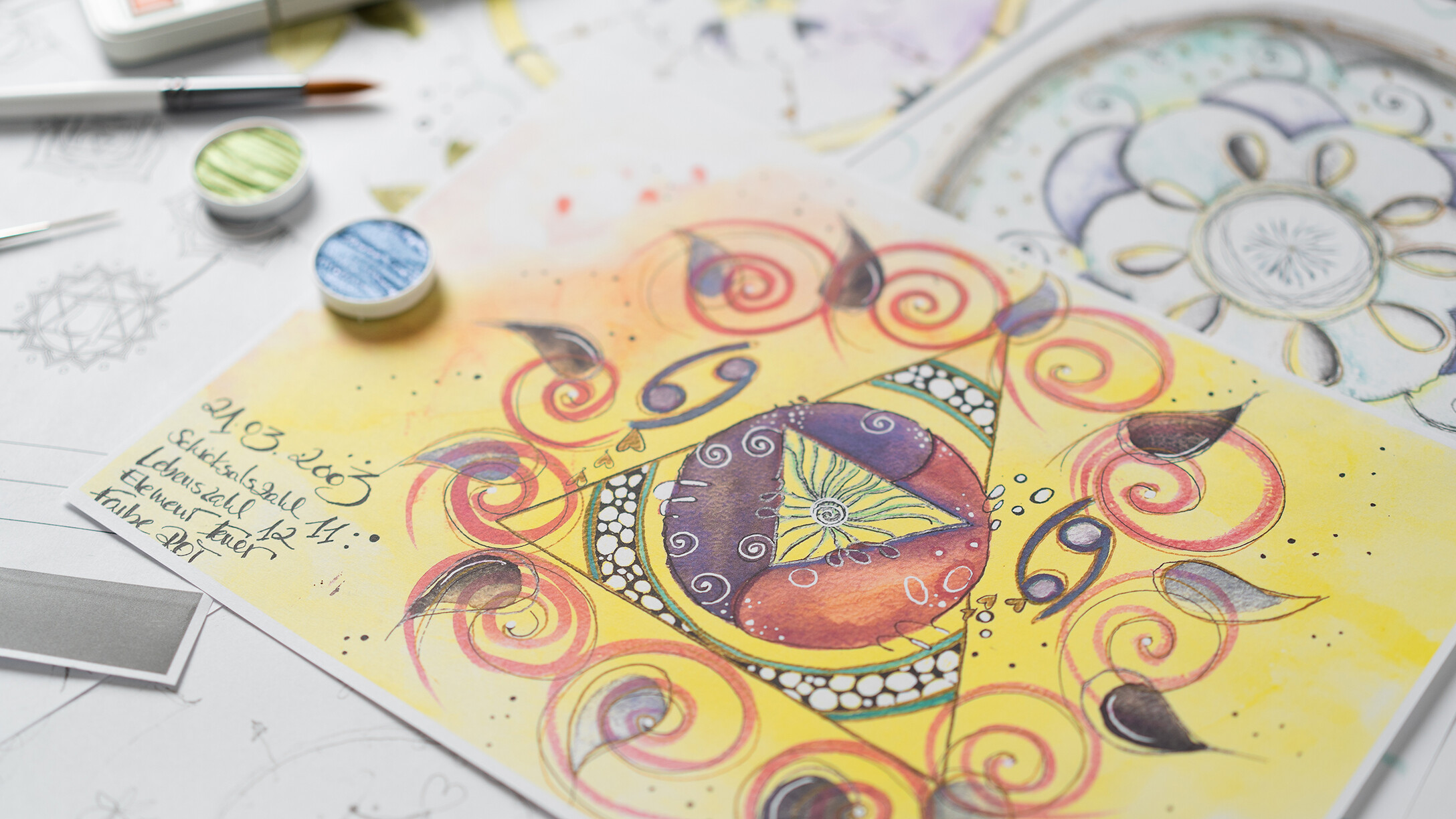 Du wählst intuitiv Farben, Symbole, Zeichen und Form.