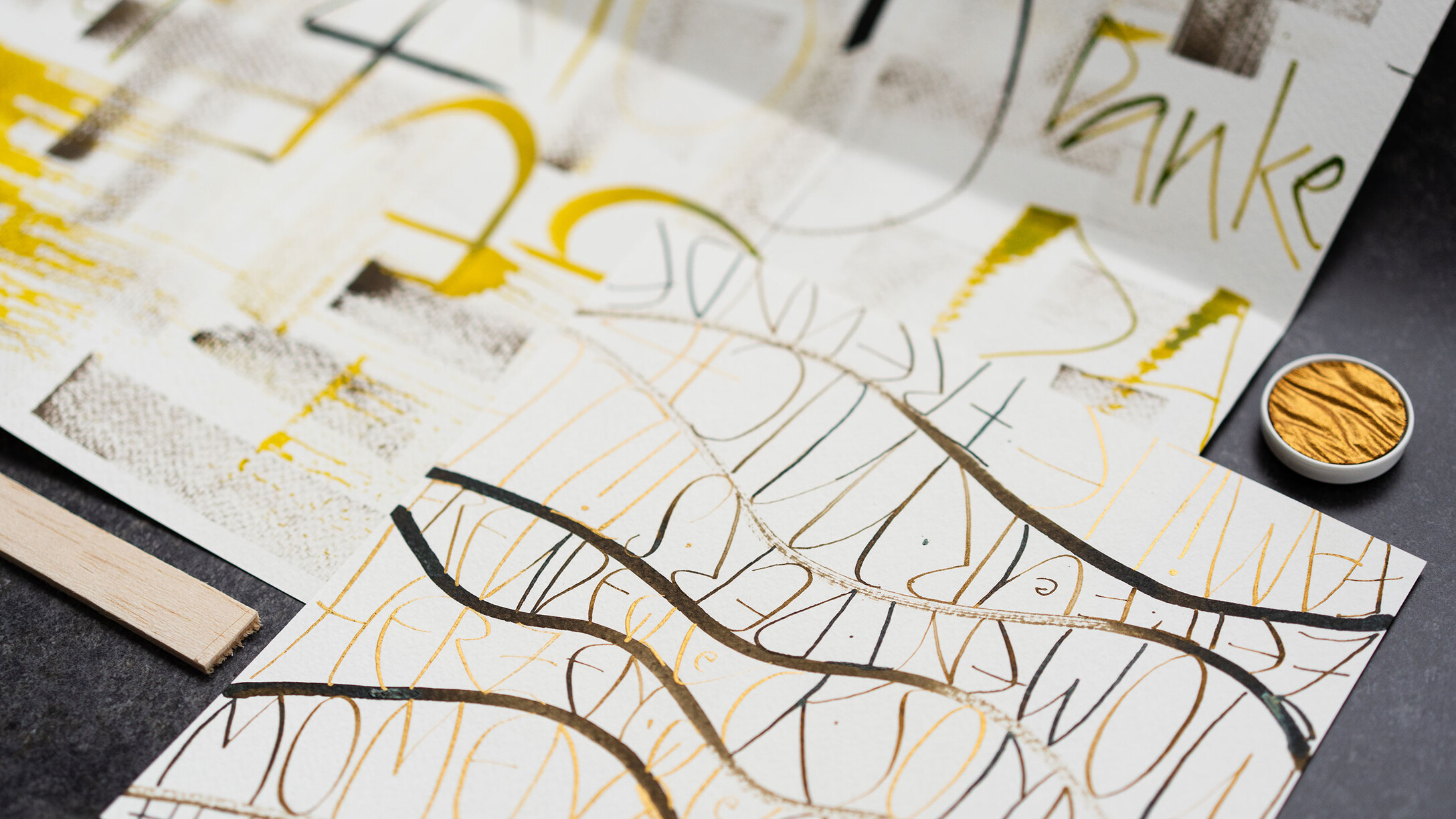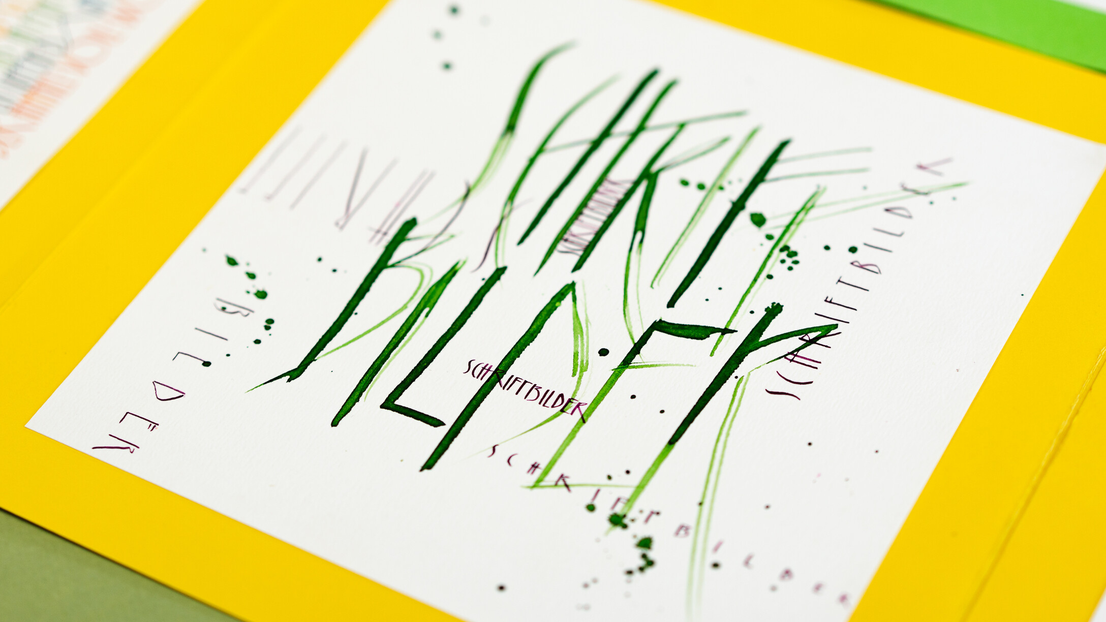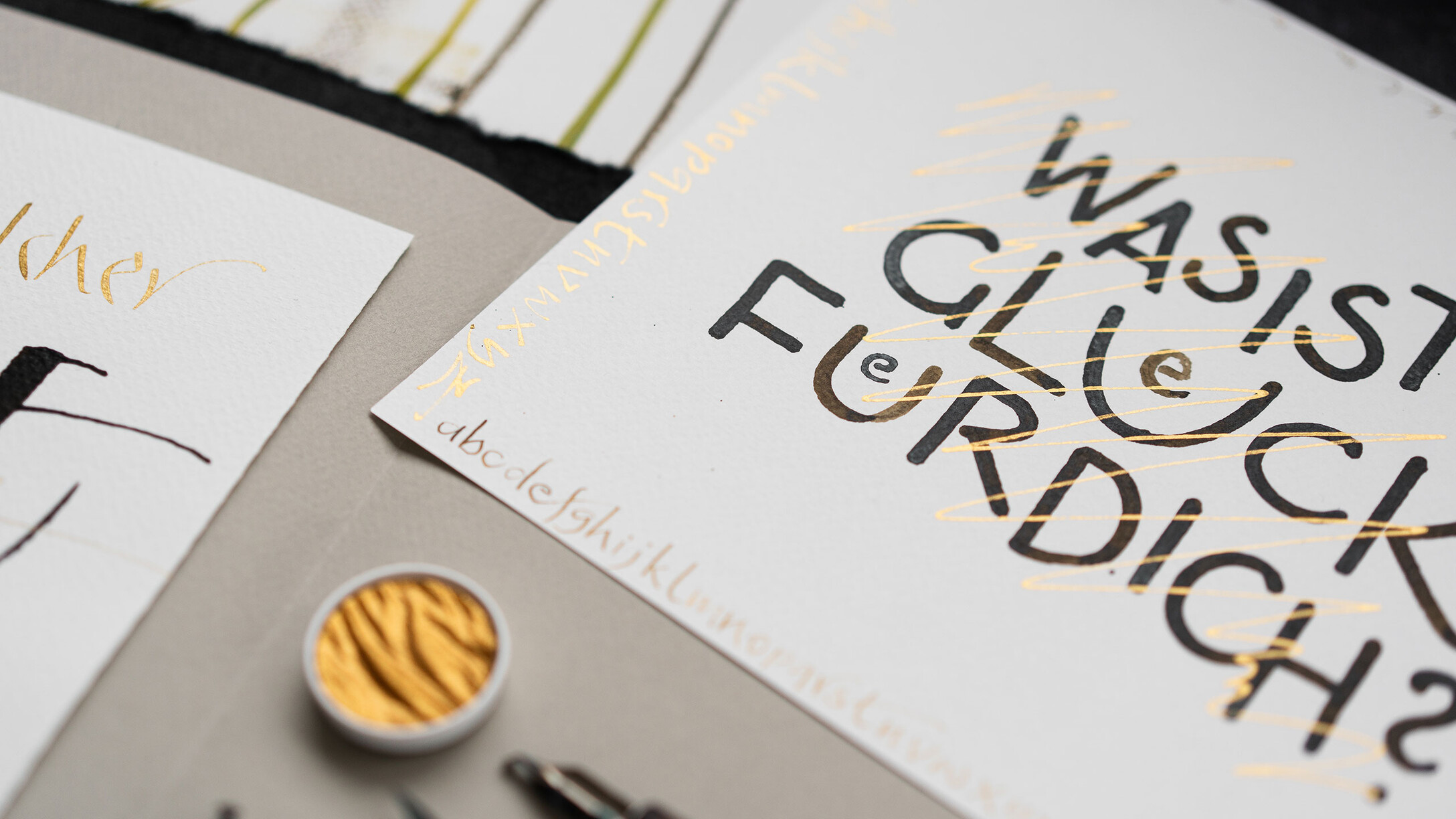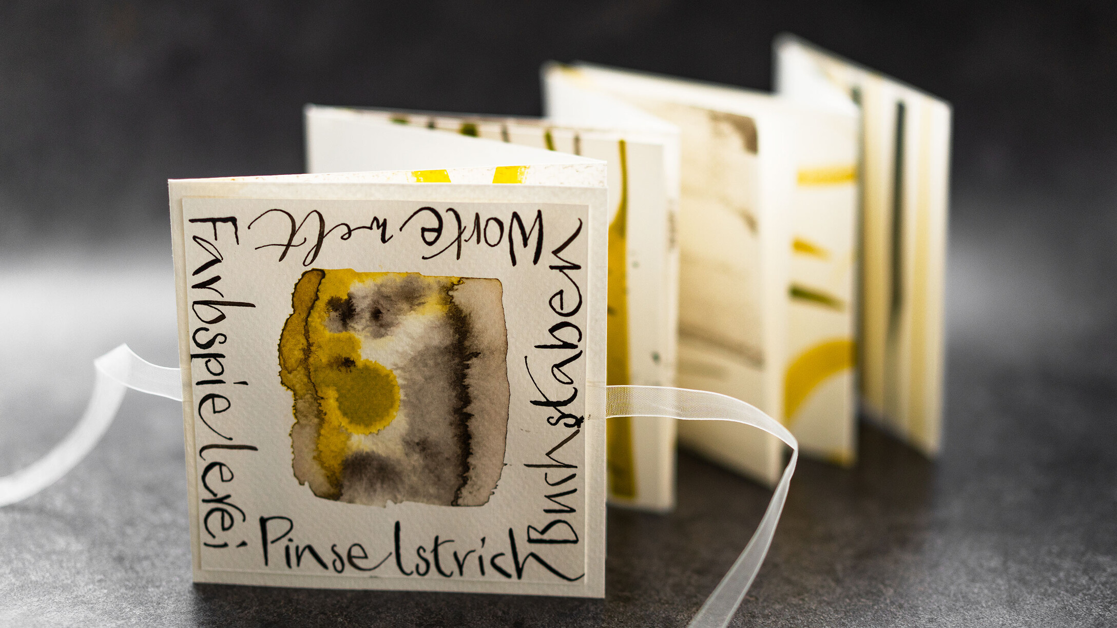 Neben dem Erlernen der Schrift informiere ich Euch über Papier und Material. Bei dem Kurs entstehen mehrere Schriftblätter, die dann zu einem Leporello zusammengefasst werden.