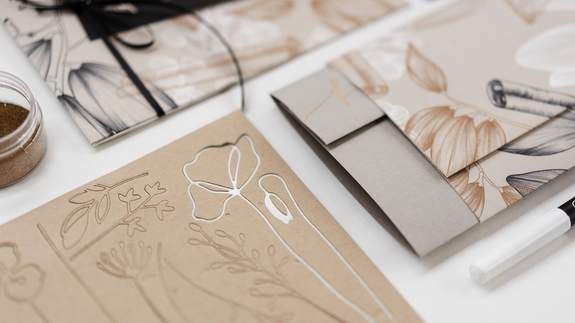In diesem speziellen Kurs entstehen edle Trauerkarten, teilweise mit handgefertigtem Kuvert. Verschiedene Techniken wie Prägen, Stempeln, Aquarellieren und Falten kommen zum Einsatz. Als Vorlage dienen Musterkarten, es können auch eigene Kreationen umgesetzt werden, wer möchte kann die Karten auch gleich beschriften.