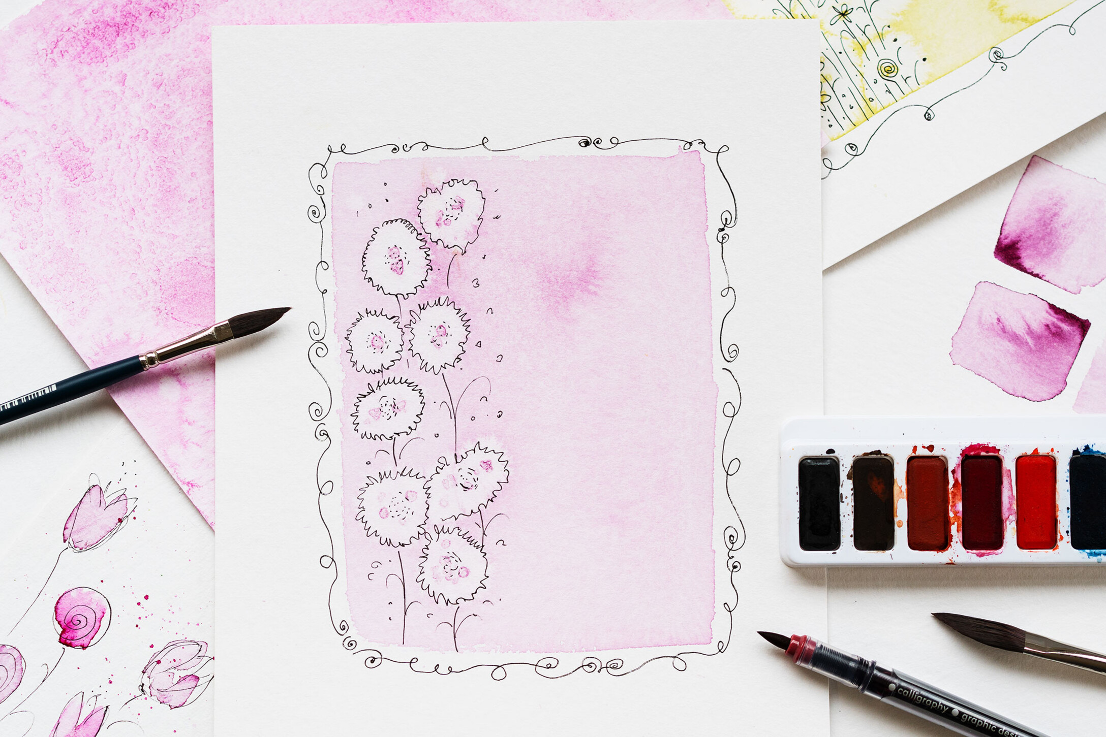 Ein weiterer Schwerpunkt liegt auf der richtigen Handhabung der Pinsel. Du lernst die unterschiedlichen Pinselarten kennen und erfährst, wie sie in der Aquarellmalerei eingesetzt werden, um Blätter, Blüten und Blumen zu kreieren. Die erlernten Techniken setzen wir anschließend in kleinen Projekten um, lass dich einfach inspirieren!