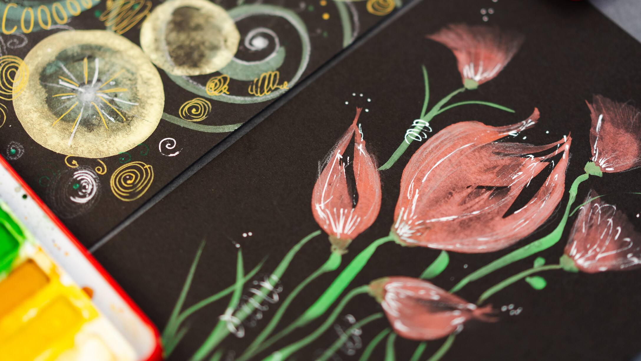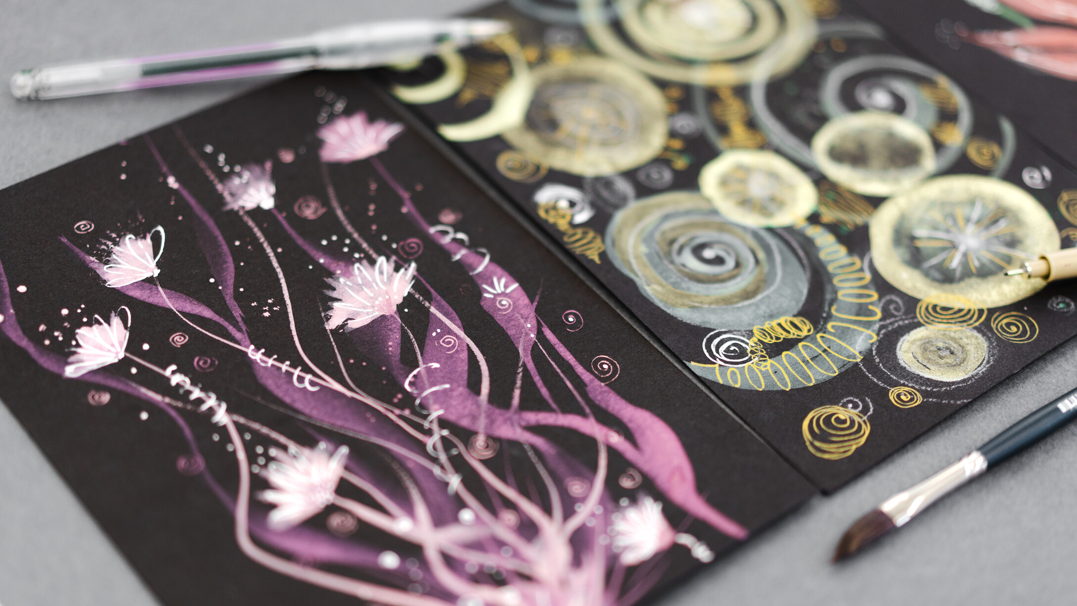 Tieren. Wir arbeiten auch auf schwarzem Papier und nutzen die funkelnden Metallicfarben von Coliro sowie
