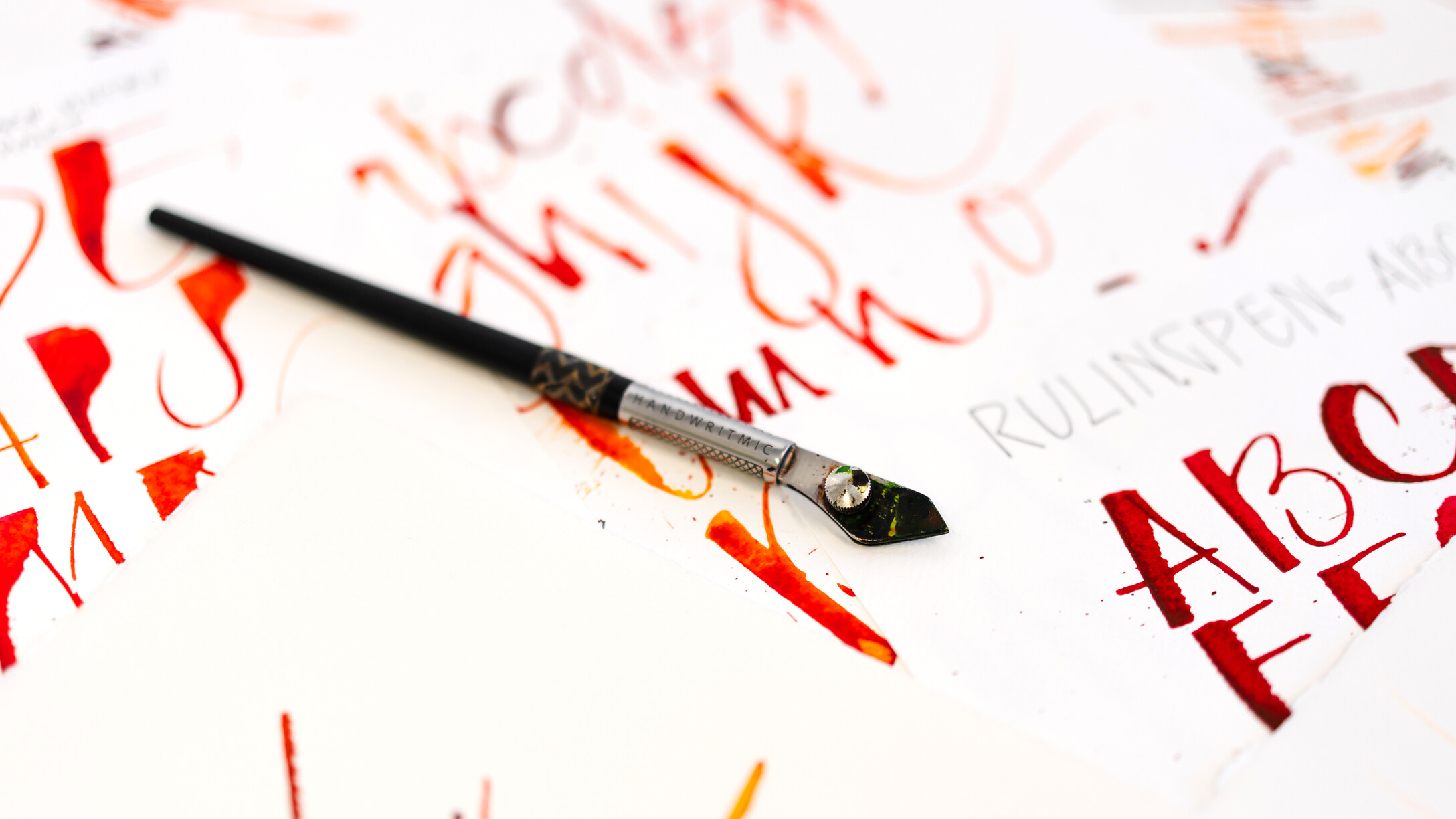 Typischerweise bestehen die zweiteilige Feder mit Stellschraube aus robustem Stahl oder Messing, was für eine langlebige Schreibspitze sorgt. Der Griff des Rulingpens ist meist aus Holz gefertigt. Durch seine spezielle Bauweise ermöglicht der Rulingpen eine individuelle Steuerung, was je nach Schreibgeschwindigkeit, Papieroberfläche und Haptik zu unterschiedlichen, oft faszinierenden Effekten führt. Dank dieser Kombination aus technischen Details und handwerklicher Qualität zeige ich euch die vielfältigen kreativen Möglichkeiten dieser speziellen Feder und ihr könnt gespannt sein, was Spannendes entsteht.