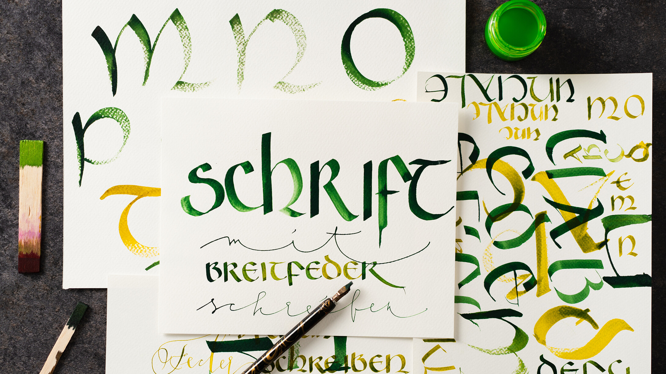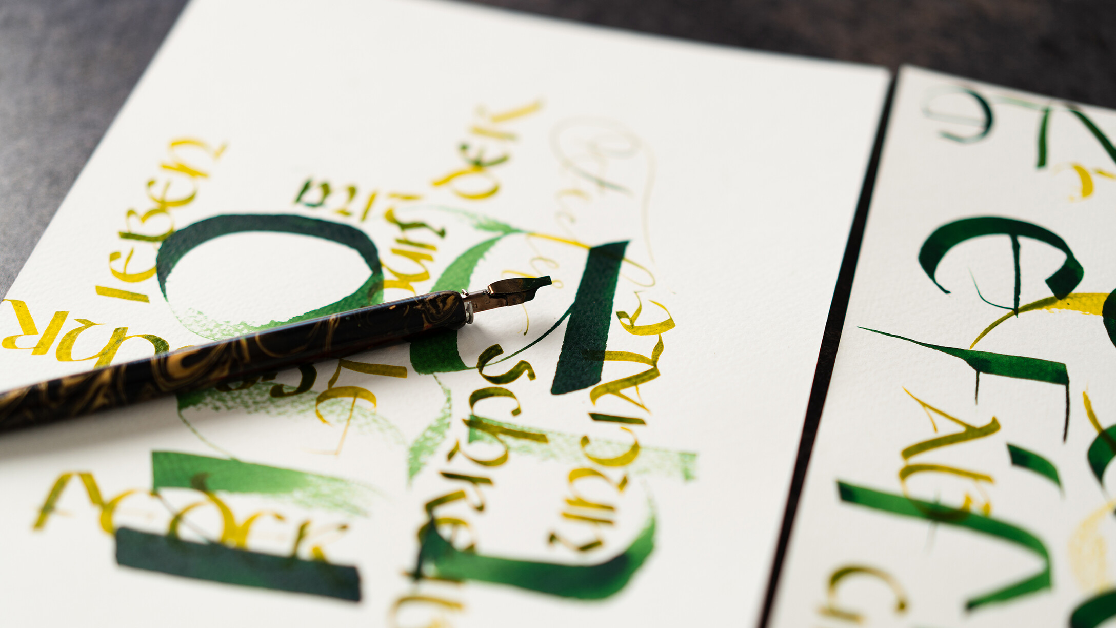 Bei der hochgezogenen Variante verlassen wir die quadratische Form und ziehen die Buchstaben in die Höhe. Dadurch entsteht eine moderne, vielseitig einsetzbare Schrift. Beide Schriften eignen sich hervorragend für die Text- bzw. Kartengestaltung.