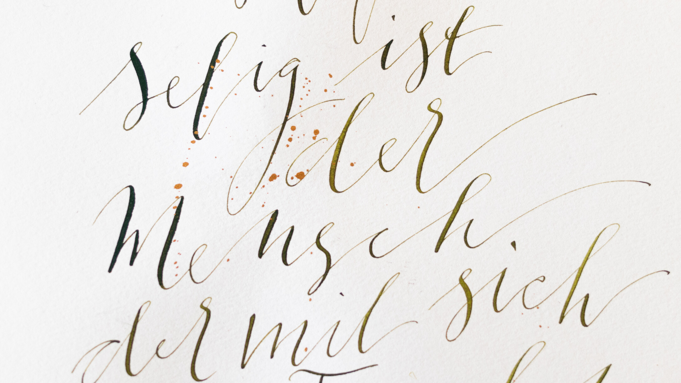 Dieser Fortgeschrittenenkurs richtet sich an alle, die die Englische Schreibschrift bereits gelernt haben und schreiben können. An diesem Tag beschäftigen wir uns mit der modernen, flexiblen Schreibweise. Zum einen verlassen wir die Grundlinie und spielen mit extremen Unter- und Oberlängen und zum anderen ziehen wir die Buchstaben weit auseinander.