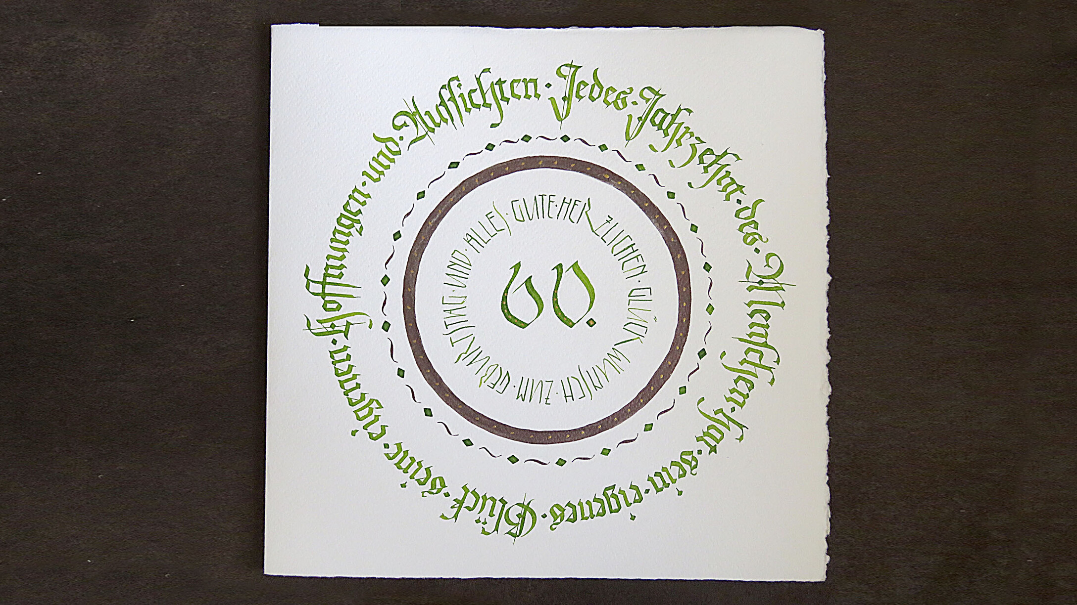 Die Fraktura wird mit der Breitfeder geschrieben und zählt zu den gebrochenen Schriftarten, d.h. die Bögen und Rundungen werden mit einem sichtbaren Knick geschrieben. Vom 16. bis zum 20. Jhd. war sie dei meistverbreitete Druckschrift im deutschsprachigen Raum. Diese Schrift ist eine sehr schöne, vielseitig einsetzbare Zierschrift.
