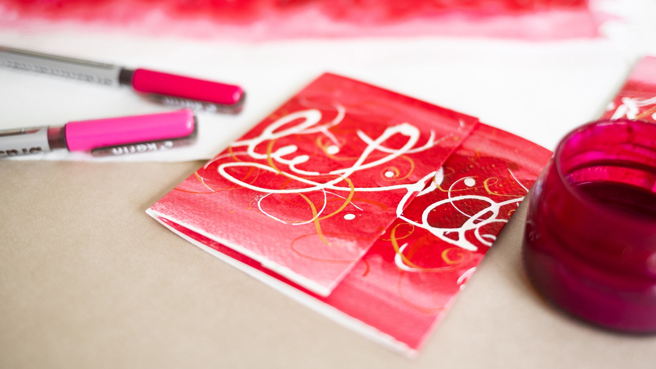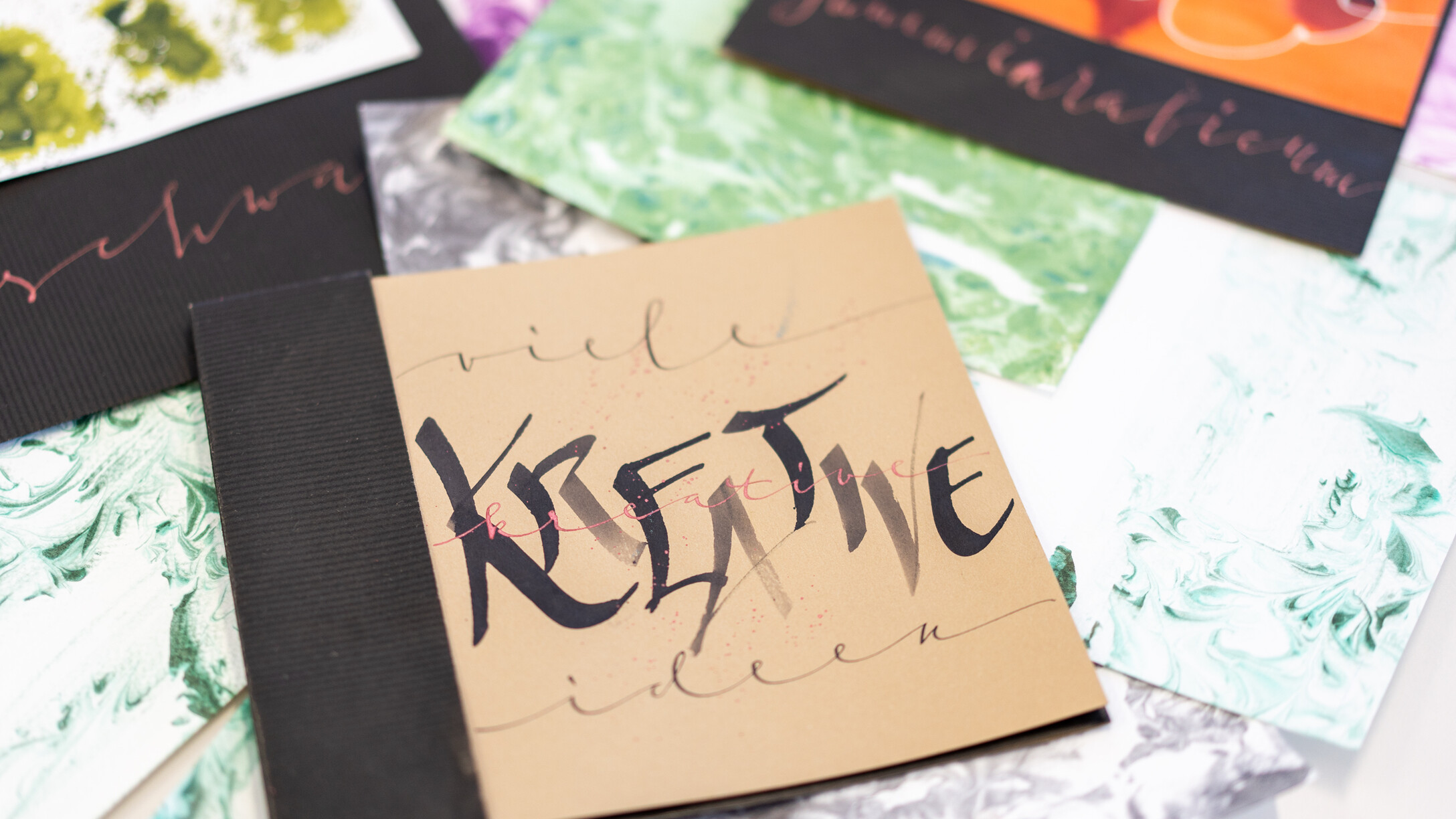 "SEI KREATIV" lautet das Motto für diesen Tag. Wir fertigen ein oder mehrere Bilder sowie Glückwunschkarten in diversen Größen an. Durch das Zusammenspiel von verschiedenen Schriften sowie dem Einsatz diverser Federn und Farben, entstehen sehr persönlich gestaltete Objekte. Dieser Kurs richtet sich an alle Fortgeschrittenen.