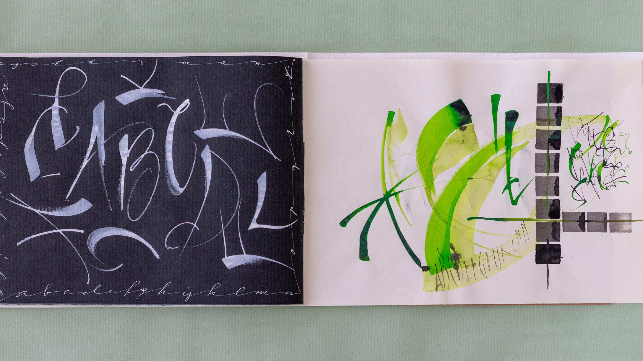In diesem Kurs entsteht ein Heft aus verschiedenen Papieren in einer speziellen Bindung. Format ca. 38 x 26 cm. Die Seiten werden individuell gestaltet - es kann gezeichnet, geschrieben oder mit Farbe gearbeitet werden. Blätter in verschiedenen Varianten (beschriftet oder nicht beschriftet) stehen zur Auswahl. Man kann auch eigene Übungsblätter mitbringen.