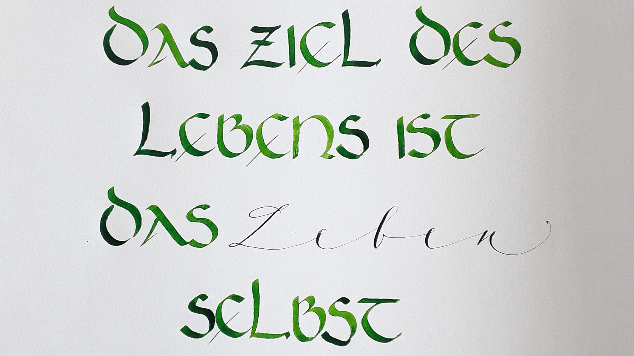 Die Unziale-Schrift wurde im 3. Jhd. n. Chr. entwickelt. Sie wird auch als Mönchsschrift bezeichnet. Aus dieser Schrift entstand später die uns bekannte Druckschrift. Da die Unziale nur aus Großbuchstaben besteht, eignet sie sich sehr gut für Kalligraphie-Einsteiger. Neben dem Erlernen der Schrift, gibt es Tipps und Tricks rund um Schreibmaterial, Federn und Papier. Zudem falten wir noch ein Papierobjekt.