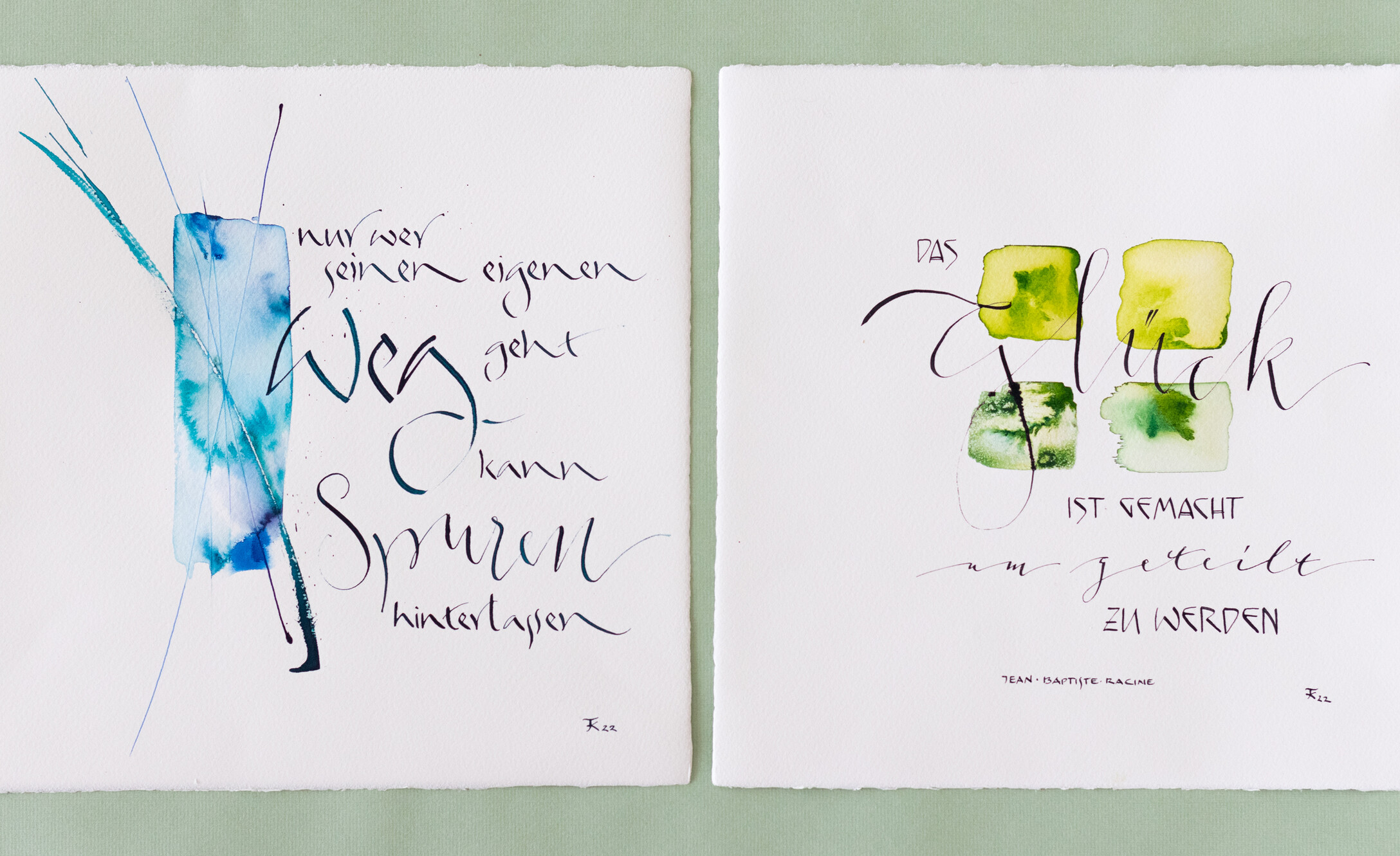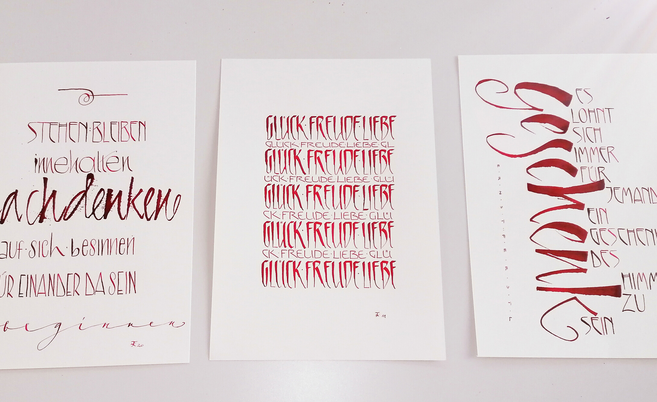 Dieser Kurs richtet sich an alle Fortgeschrittenen bzw. an jene, die bereits eine oder mehrere Schriften beherrschen. Es entsteht entweder ein Kreisschriftbild mit verschiedenen Schriften bzw. Techniken, wie zum Beispiel ein Hintergrund in Gummiarabicum, oder eine Bildertrilogie individuell gestaltet in Schrift, Farbe und Form. Der Phantasie sind keine Grenzen gesetzt.